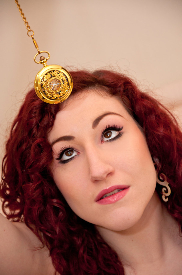 Do this a few times, counting near 0 and telling your subject that she can move and stretch and open her eyes and smile… then telling her to “SLEEP” and telling her that she’s too calm, too dreamy, too dazed and too still to do anything but breathe, relax and follow.